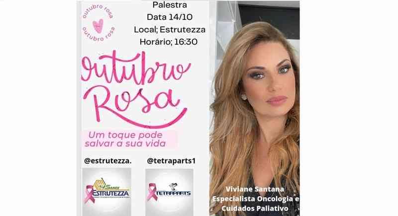 Em comemoração ao Outubro Rosa, as empresas Tetraparts Peças e Serviços e Estrutezza Indústria e Comércio promoverão, hoje, sexta-feira, a partir 16h30 a palestra "Um toque pode salvar a sua Vida", com a palestrante Viviane Santana, especialista Oncologia e Cuidados Paliativos.