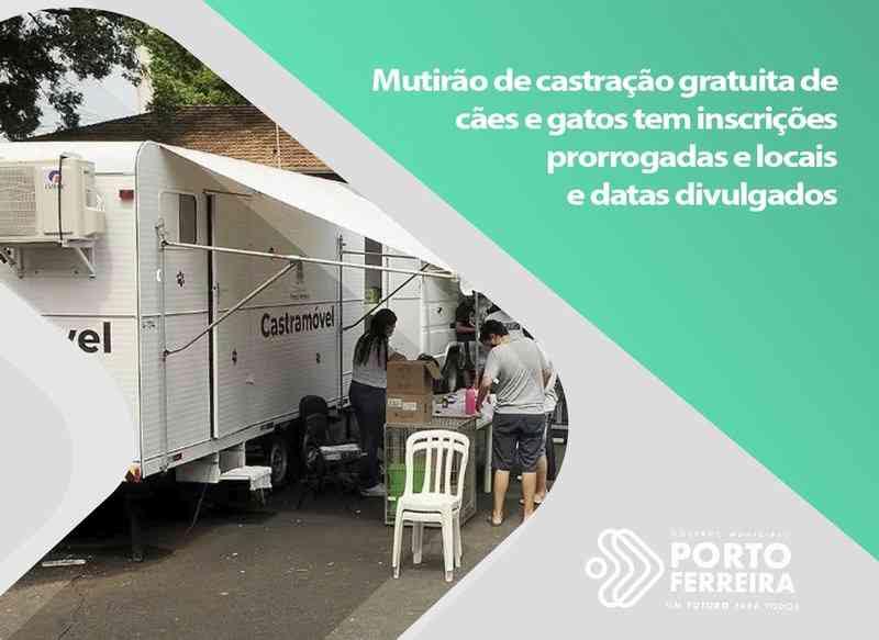 O Centro de Controle de Zoonoses está em fase de organização de mais um mutirão de castração de cães e gatos, por intermédio de uma unidade móvel (Castramóvel). A previsão é que mais de 850 cães e gatos sejam castrados e microchipados. As inscrições foram prorrogadas até o dia 18 de novembro, impreterivelmente. Terão prioridade animais de rua e animais de pessoas devidamente regularizadas junto ao Cadastro Único.