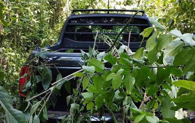 Diante do exposto, a equipe se deslocou até o local indicado, e após incursão a pé pela mata, lograram êxito em localizar o referido veículo, escondido entre a vegetação.