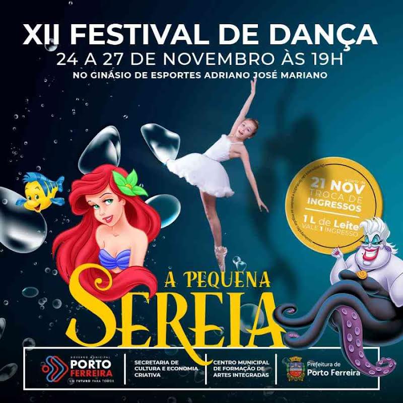 Nos próximos dias 24, 25, 26 e 27 de novembro (quinta-feira a domingo) a Secretaria de Cultura e Economia Criativa de Porto Ferreira, por meio do Centro Municipal de Artes Integradas, vai realizar o XII Festival de Dança com os alunos e colaboradores dos cursos de dança da instituição.