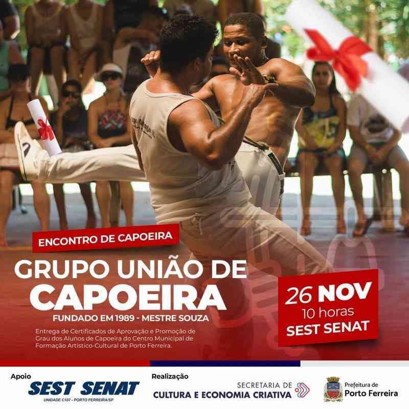 A Prefeitura de Porto Ferreira, por meio da Secretaria de Cultura e Economia Criativa, realiza no sábado (26/11), com o apoio do Sest/Senat, o Encontro de Capoeira do Grupo União de Capoeira.