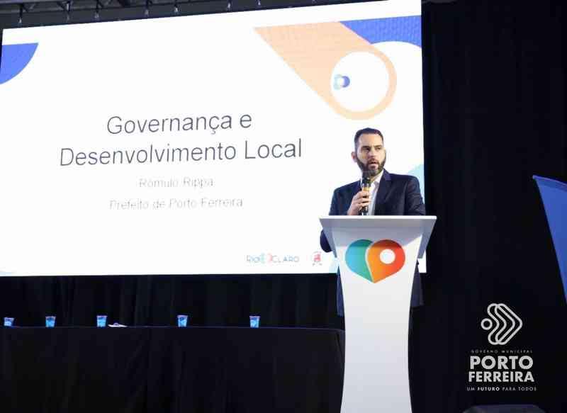 O prefeito Rômulo Rippa, de Porto Ferreira, participou como palestrante do 1º Fórum de Políticas Públicas de Rio Claro, organizado pela prefeitura local nesta quarta-feira (23/11). O evento reuniu quase 500 pessoas para conhecer modelos de gestão implementados nos municípios da região e detalhes de ações do governo estadual.