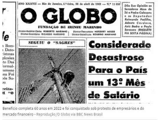 Tudo isso aconteceu sob protestos dos empresários e do mercado financeiro da época, conforme registrou o jornal O Globo, que no dia 26 de abril de 1962 estampou na sua manchete: "Considerado desastroso para o País um 13º mês de salário". O desastre não veio e hoje 85,5 milhões são beneficiados com o rendimento adicional, segundo o Dieese.