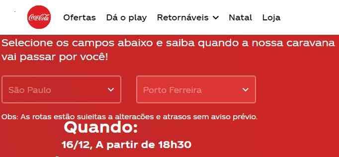 Caravana de Natal da Coca Cola já tem data de passagem por Porto Ferreira, será no dia 16 de dezembro por volta das 18h30 horário de Brasília.