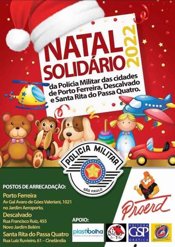 O prazo para doação de brinquedo que serão distribuídos para crianças carentes, da campanha “Natal Solidário 2022” – feito pela Polícia Militar de: Porto Ferreira, Santa Rita do Passa Quatro e Descalvado, pertencentes a 3ª CIA do 38º BPM/I, vai até amanhã, sexta-feira (23/12).