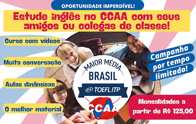 Essa campanha consiste em oferecer duas modalidades de bolsas de estudos para os cursos de qualidade comprovada do CCAA: na primeira opção (bolsas para grupos), as crianças, pré-adolescentes e adolescentes ganharão 50% de desconto no primeiro semestre do curso e 40% de desconto do segundo semestre em diante (até a conclusão de seus estudos) ao se matricularem com mais seis colegas de classe ou amigos da mesma faixa etária. Nessa modalidade, as mensalidades são oferecidas a partir de R$ 125,00 para cada aluno.