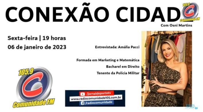 Nesta sexta-feira Amália Paci foi a entrevistada no Programa Conexão Cidade com a apresentação de Osni Martins pela Rádio Comunidade FM e transmissão pelo Jornal do Porto TV.