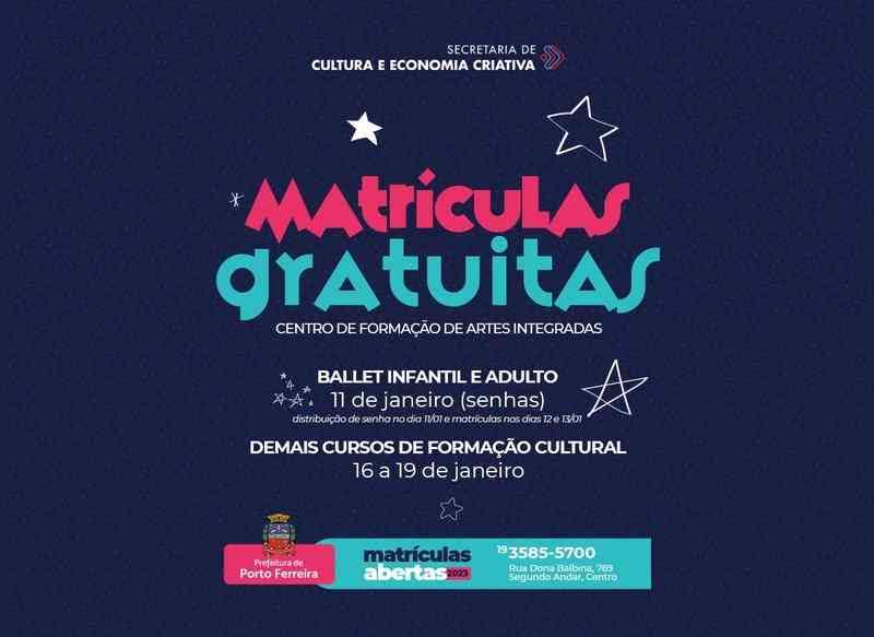 A Secretaria de Cultura e Economia Criativa de Porto Ferreira abre a partir da próxima semana o período de inscrições para as vagas nos cursos do Centro de Formação de Artes Integradas de Porto Ferreira.