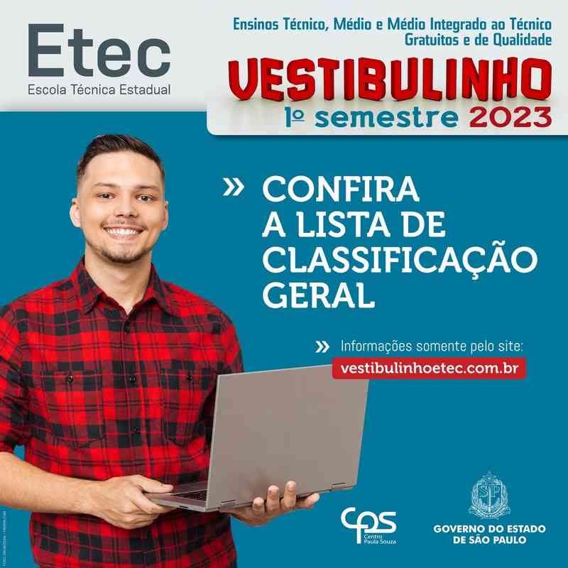 Alunos que prestaram o Vestibulinho das ETECs podem consultar pela internet a lista de classificação geral do processo seletivo das Escolas Técnicas Estaduais (Etecs) para o primeiro semestre de 2023.