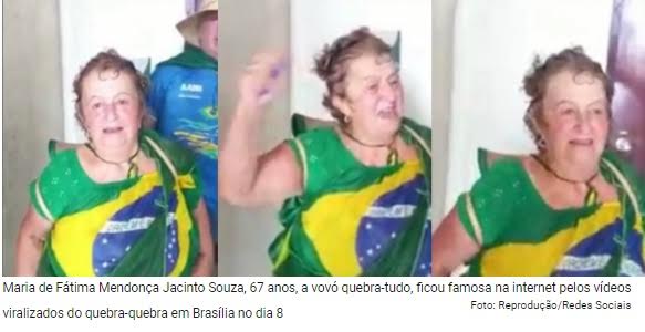 Entre os possíveis detidos depois do quebra-quebra do dia 8, na Praça dos Três Poderes, em Brasília e que, para bolsonaristas, poderiam estar sendo maltratados (tese desmentida amplamente pela cobertura da imprensa), a “dona Fátima”, a vovó quebra-tudo, tem antecedentes criminais que contrastam com a alegada defesa dos bons costumes e sequer foi presa. Por ironia, ela mesma acabou vítima de Fake News.