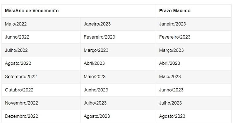 De acordo com o cronograma o prazo máximo para regularização das CNHs vencidas entre maio e dezembro de 2022 vai até 31/08/2023, conforme imagem no topo da reportagem.