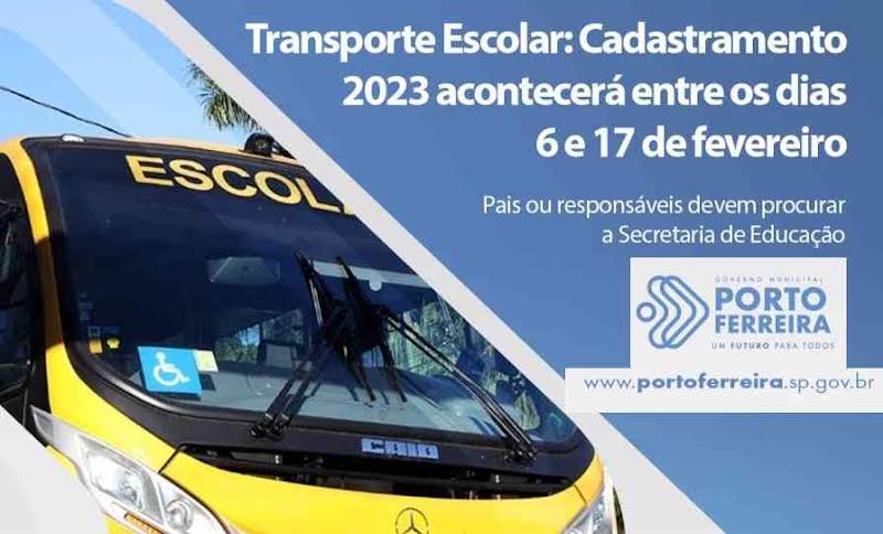Porto Ferreira informa que o cadastramento do Transporte Escolar 2023 será entre os dias 6 e 17/02