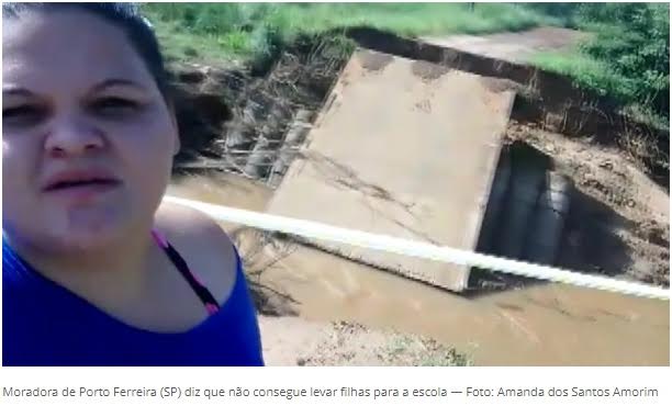 Moradores da área rural de Porto Ferreira (SP) se sentem isolados depois que uma ponte caiu por causa da chuva há 15 dias. Com isso, o acesso ao Centro ficou comprometido e crianças estão sem ir à escola desde o início das aulas na sexta-feira (3).