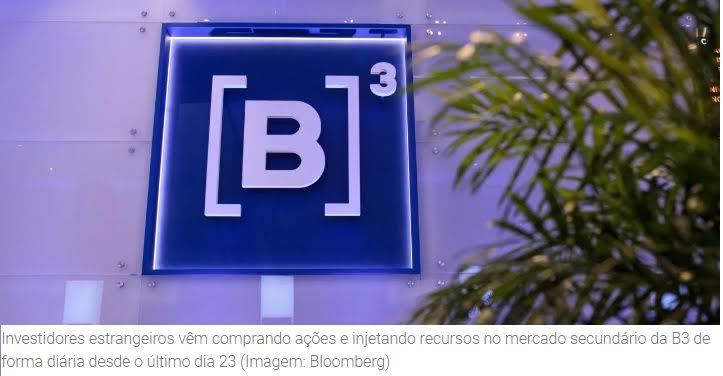 Os investidores estrangeiros injetaram recursos no mercado secundário (ações já listadas) da B3 pelo nono pregão seguido. No dado mais atualizado, referente à quinta-feira da semana passada (dia 2), os gringos alocaram R$ 466,64 milhões.