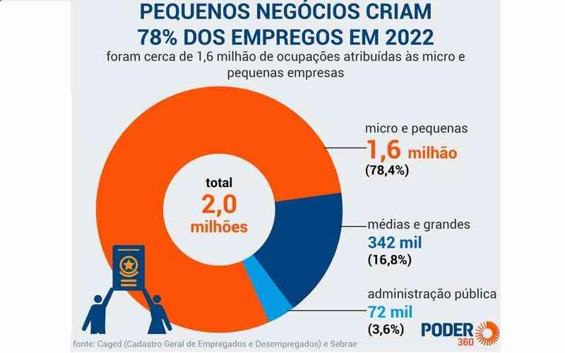 Cerca de 78% dos novos empregos de 2022 foram abertos pelas micro e pequenas empresas, diz um levantamento do Sebrae feito com base no Caged (Cadastro Geral de Empregados e Desempregados). Eis a íntegra (2 MB).