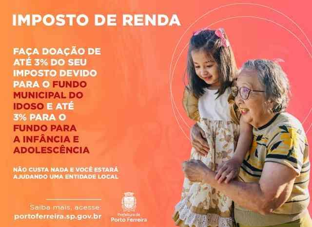 A Lei 13.797/2019 permite que o contribuinte do Imposto de Renda Pessoa Física faça doação de até 6% do seu imposto devido para os Fundos da Criança e do Idoso, de Porto Ferreira, limitado a 3% para cada fundo.