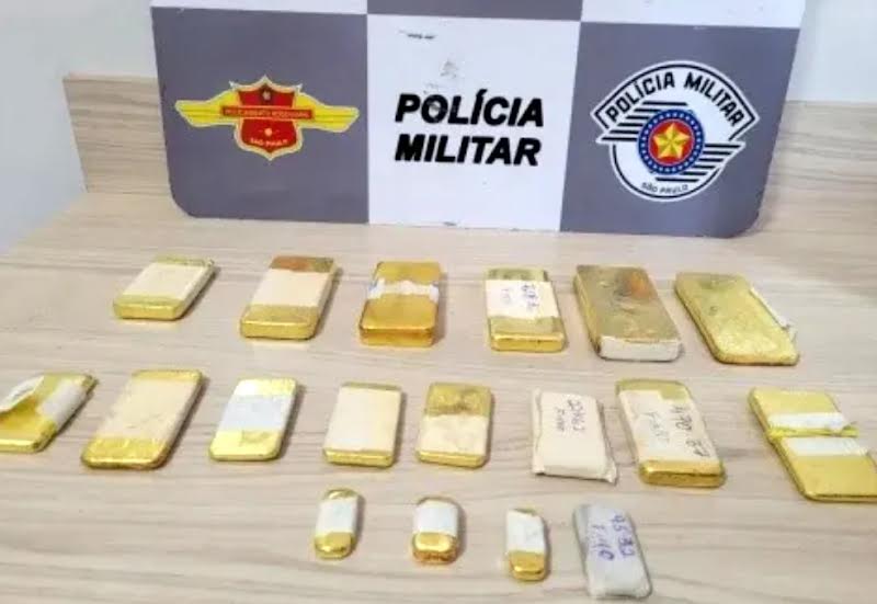 A Polícia Rodoviária de Araraquara (SP) apreendeu 18 barras de ouro avaliadas em R$ 2,5 milhões durante fiscalização, na manhã de ontem, terça-feira (28), na Rodovia Washington Luís (SP-310). A carga estava com o passageiro de um ônibus. O homem de 40 anos foi preso.