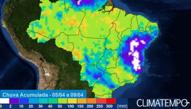 No domingo de Páscoa, essa condição de muita chuva permanece no litoral. Já na região da capital paulista e na maioria das áreas do interior, a chuva diminui de intensidade, mas ainda ocorre a qualquer hora, intercalada com períodos de melhoria. O sol reaparece com força só no oeste de São Paulo, nas áreas próximas ao Mato Grosso do Sul.
