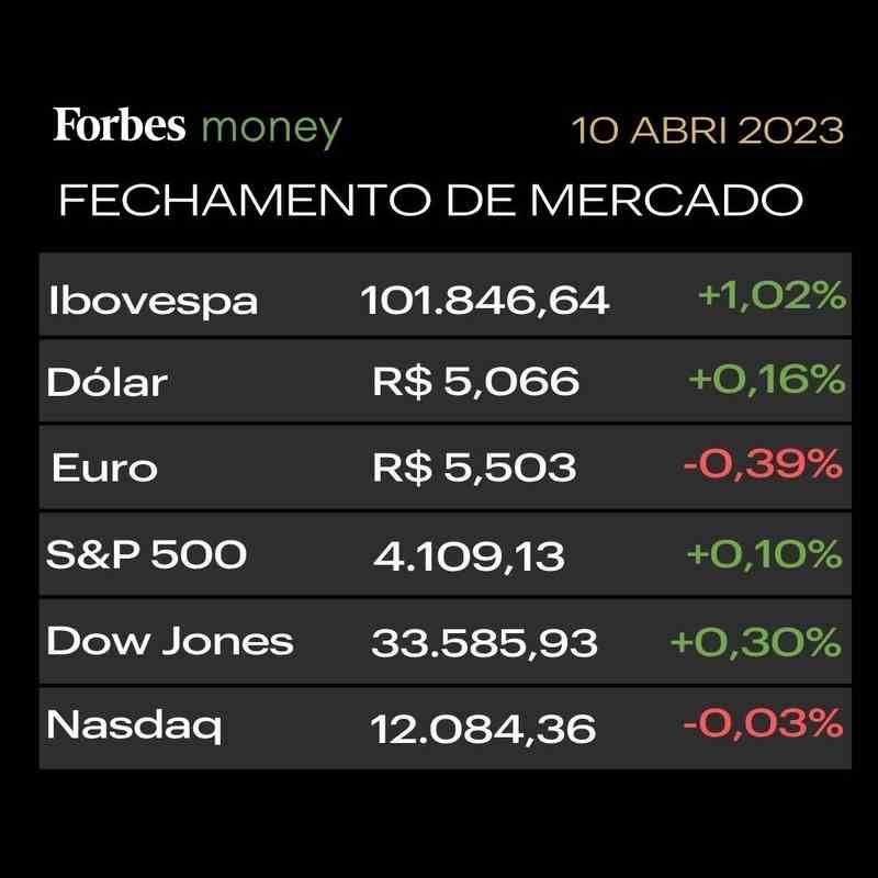 O Ibovespa encerrou esta segunda-feira (10) em alta de 1,02%, aos 101.845,64 pontos, com ajuda da Vale e da Petrobras, que subiram 1,93% e 2,13%, respectivamente.