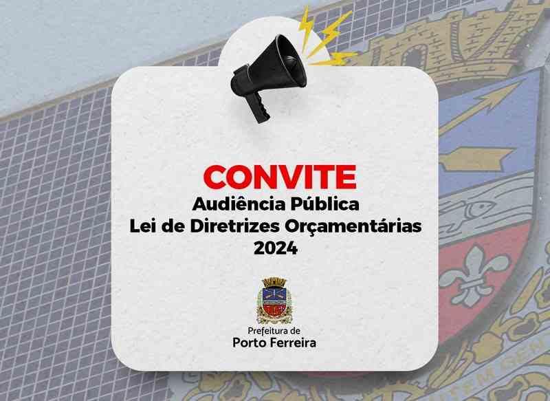 A Prefeitura de Porto Ferreira, cumprindo o disposto no artigo 48º da Lei Complementar 101 de 04 de maio de 2000 (Lei de Responsabilidade Fiscal), convida a população em geral para AUDIÊNCIA PÚBLICA referente à LDO (Lei de Diretrizes Orçamentárias) para 2024, do município de Porto Ferreira, que será realizada nesta quarta-feira (12/04), às 18 horas, na Sala de Reuniões do Gabinete do Prefeito. A audiência também será transmitida virtualmente (online), pelo canal https://www.youtube.com/PrefeituradePortoFerreira.