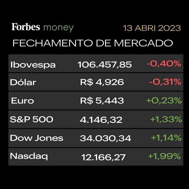 O Ibovespa fechou nesta quinta-feira (13) com variação negativa de 0,4%, aos 106.457,85 pontos, após três altas seguidas. Já o dólar recuou 0,27%, terceiro dia seguido de perdas, cotado a R$ 4,92.