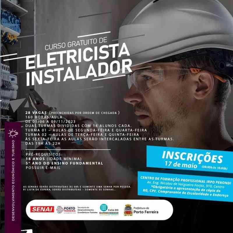 A Prefeitura de Porto Ferreira, em parceria com o Senai (Serviço Nacional de Aprendizagem Industrial), por intermédio da Secretaria de Desenvolvimento Econômico e Turismo, oferece vagas para o Curso de Eletricista Instalador, totalmente gratuito.
