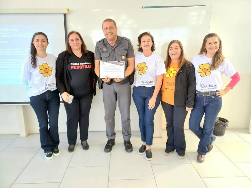 Durante o evento promovido "Imersão: Reconhecer e comunicar o Conselho Tutelar suspeitas ou casos de crimes praticados contra a criança e o adolescente" pela Secretaria do Desenvolvimento Social e Cidadania(SDSC) e Conselho Municipal dos Direitos da Criança e do Adolescente(CMDCA) realizado nessa quarta-feira (18/05), o cabo PM Osni Luciano Martins recebeu o Certificado de Honra ao Mérito pela SDSC e CMDCA