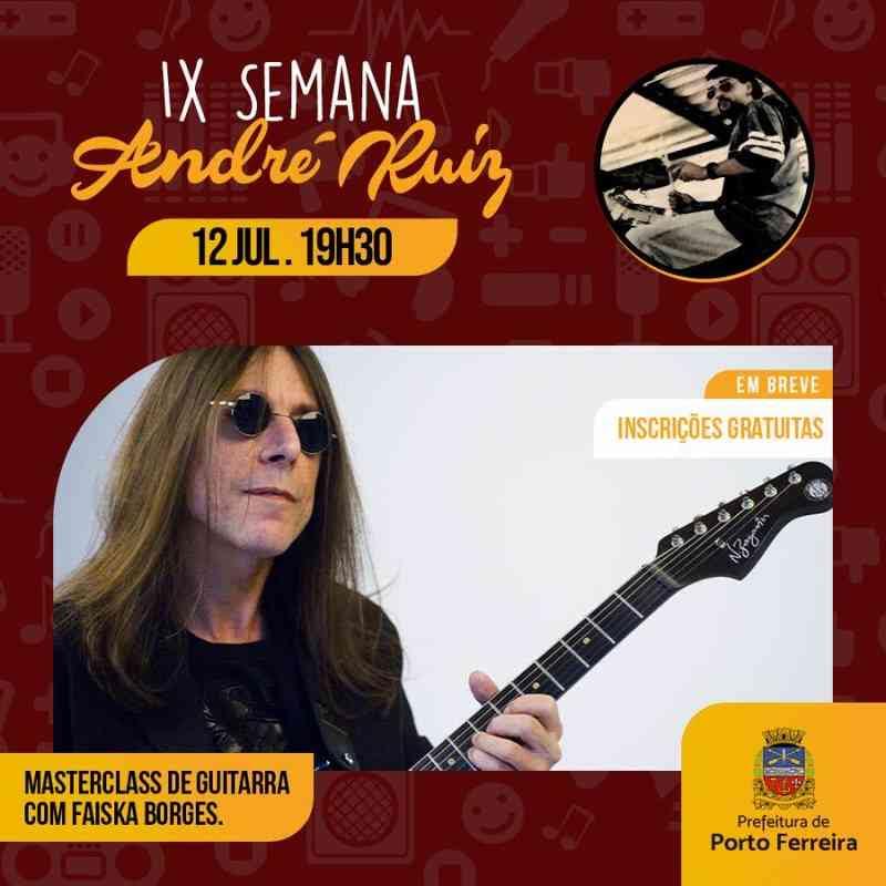 A segunda atração confirmada do evento é a do guitarrista Faiska Borges, que ministrará o Masterclass de Guitarra no dia 12 de julho (quarta-feira), a partir das 19h30.