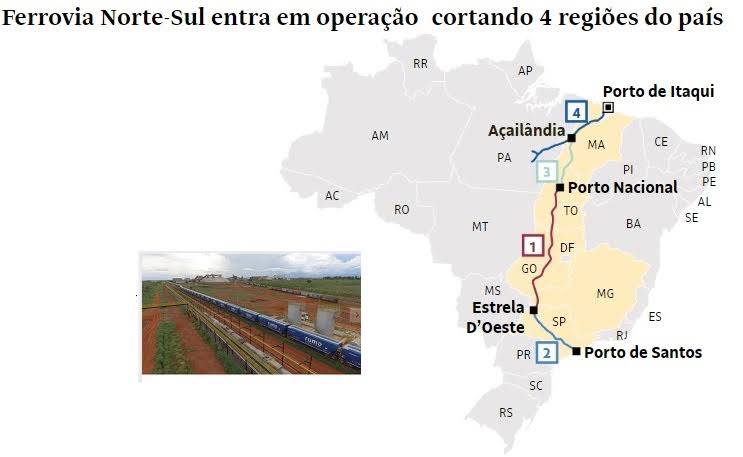 A ferrovia Norte-Sul é essencial para o desenvolvimento ferroviário do país por ser considerada uma espinha dorsal do sistema, ao passar pelas regiões Centro-Oeste, Norte, Sudeste e Nordeste e permitir a ligação entre os portos de Itaqui (MA) e Santos, por meio de trilhos operados por três concessionárias.