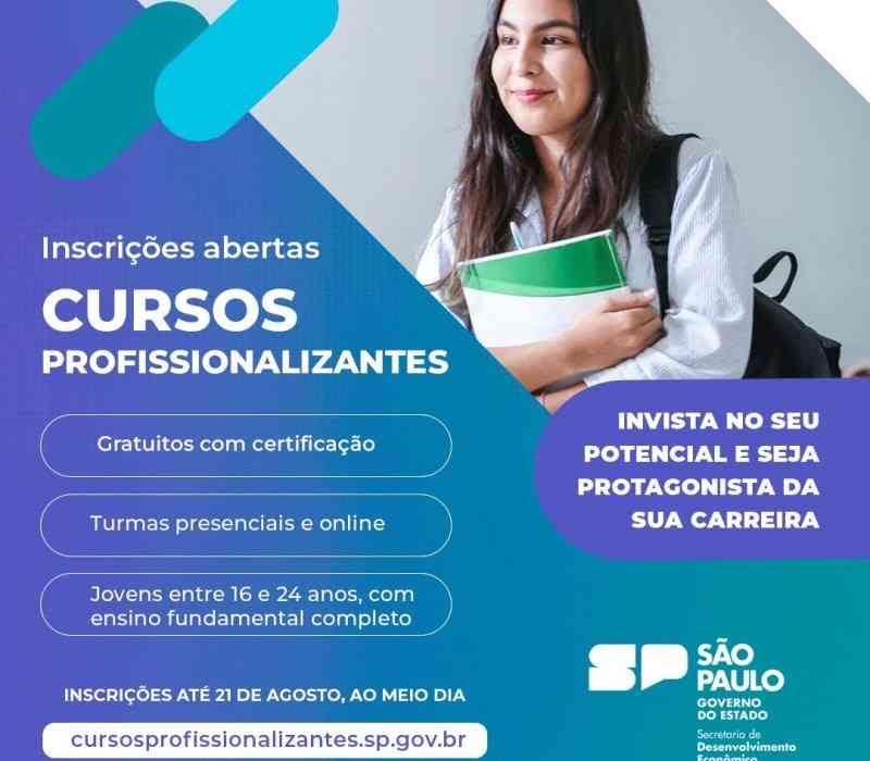 Os cursos são para jovens de 16 a 24 anos do Estado de SP e as inscrições vão até o meio-dia do dia 21 de agosto pelo site www.cursosprofissionalizantes.sp.gov.br.