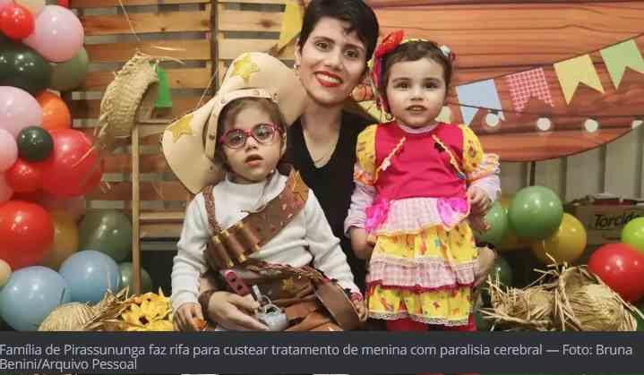 Uma família de Pirassununga (SP) faz uma rifa com cinco mil números para arrecadar R$ 22 mil e custear o tratamento de uma criança de 3 anos que tem paralisia cerebral e enfrenta outras limitações desde o nascimento.