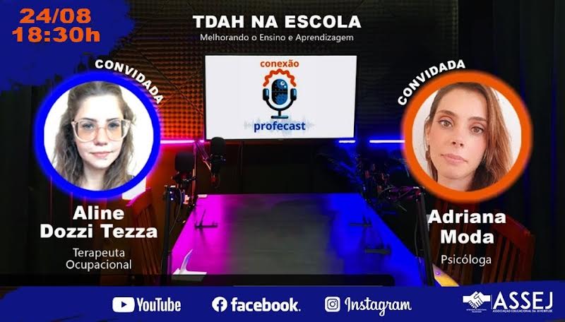 Nesta quinta-feira(24/08), a partir das 18h30, o Canal Conexão Profecast apresentará ao vivo seu podcast com o tema: TDAH na Escola – melhorando o Ensino e Aprendizagem