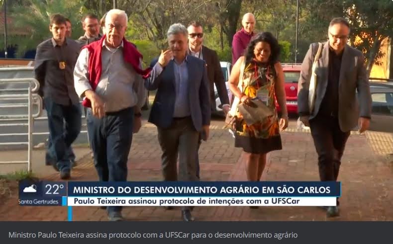 O ministro do Desenvolvimento Agrário e Agricultura Familiar, Paulo Teixeira, assinou, nesta quarta-feira (30), um protocolo de intenções com a Universidade Federal de São Carlos (UFSCar) para o desenvolvimento agrário. Veja reportagem da EPTV Central acessando esse link.