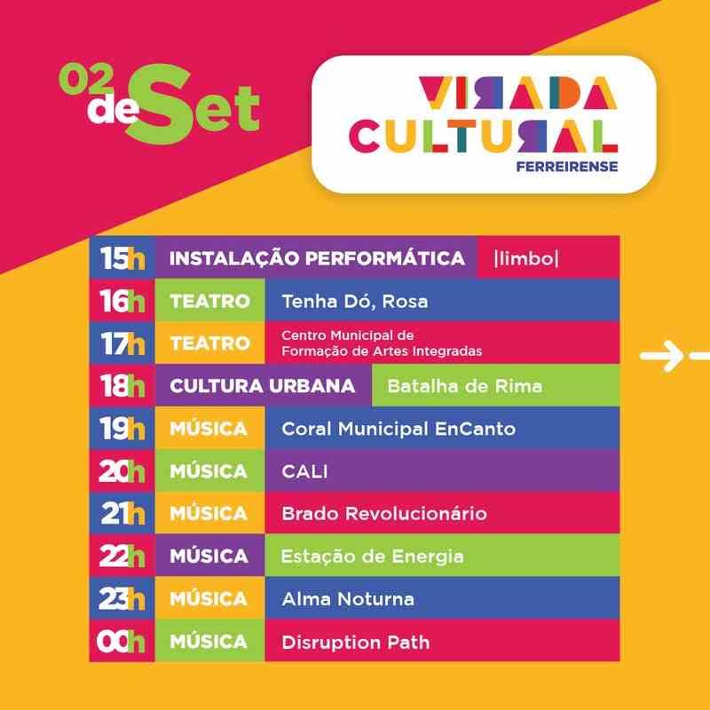 A Virada Cultural Ferreirense é uma maratona de atividades e eventos de caráter cultural marcada pela pluralidade de expressões e linguagens artísticas. Um evento que promete atrair um grande público.