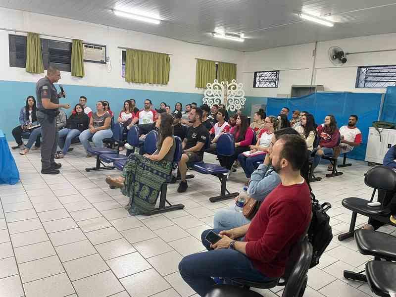 O palestrante foi o Cabo PM Osni Luciano Martins, Instrutor do Programa Educacional de Resistência as Drogas e a Violência – Proerd, tardou do tema “Controle sobre o tráfico de drogas”.