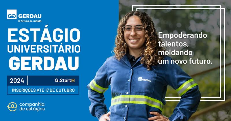 Estão abertas as inscrições para o G.Start 2024, programa de estágio universitário da Gerdau, maior empresa brasileira produtora de aço. O programa G.Start 2024 conta com uma trilha de desenvolvimento desenhada para potencializar o futuro de cada participante e com um pacote de benefícios. Entre eles estão vale transporte ou fretado (disponível para algumas localidades), vale-refeição (disponível nas unidades onde não há refeitório) ou refeitório no local, plano de saúde, plano odontológico e seguro de vida.