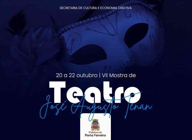 De sexta-feira a domingo (20 a 22/10) a Secretaria de Cultura e Economia Criativa de Porto Ferreira iluminará a cidade com a VII Mostra de Teatro José Augusto Tenan. Esta atividade, instituída por lei municipal de 2017, ocorre anualmente em outubro em memória do professor de teatro e cidadão ferreirense que dá nome ao evento.