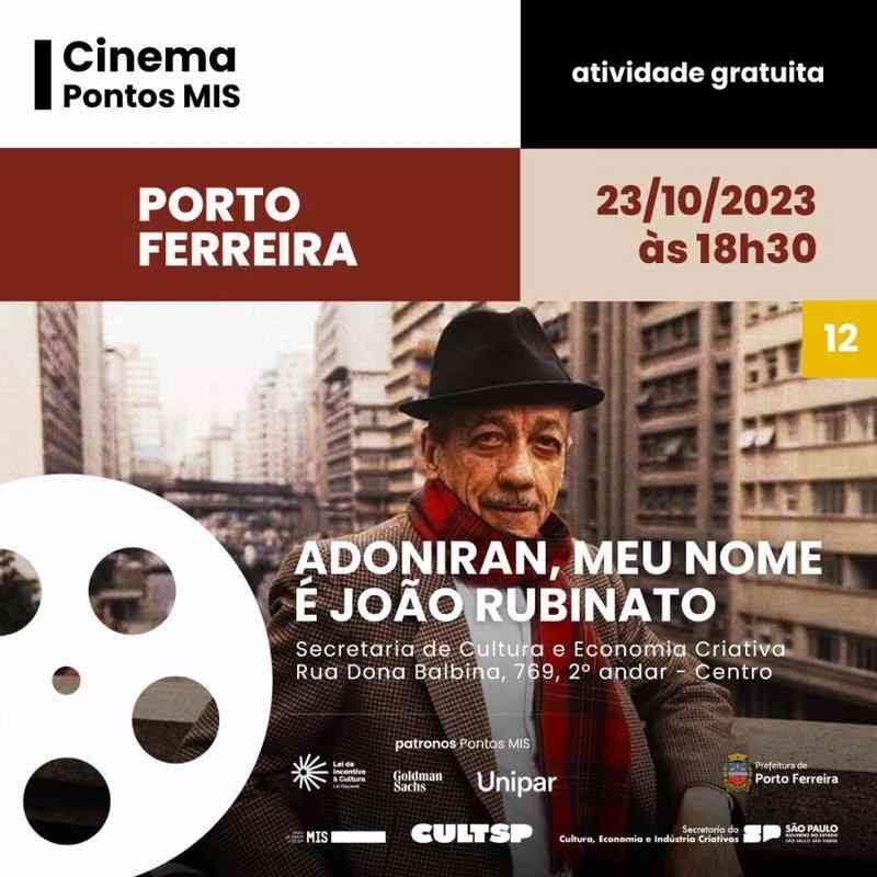 Nesta segunda-feira (23/10) a Secretaria de Cultura e Economia Criativa de Porto Ferreira retorna com mais uma sessão presencial de cinema do projeto Pontos MIS, em parceria com o Museu da Imagem e do Som de São Paulo.