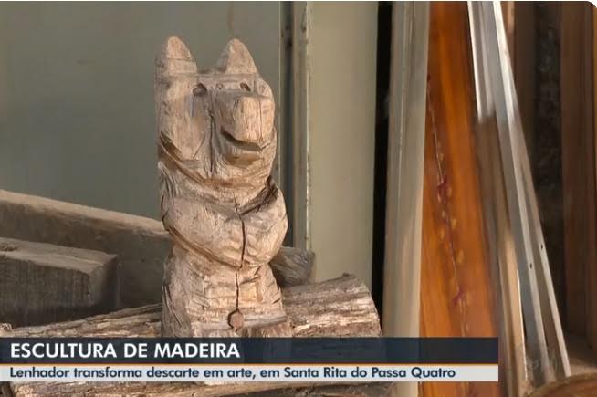 Junio Carlos Pimenta de Souza, lenhador no município de Santa Rita do Passa Quatro, produz esculturas variadas. A paixão pelas figuras começou quando ainda era estudante.