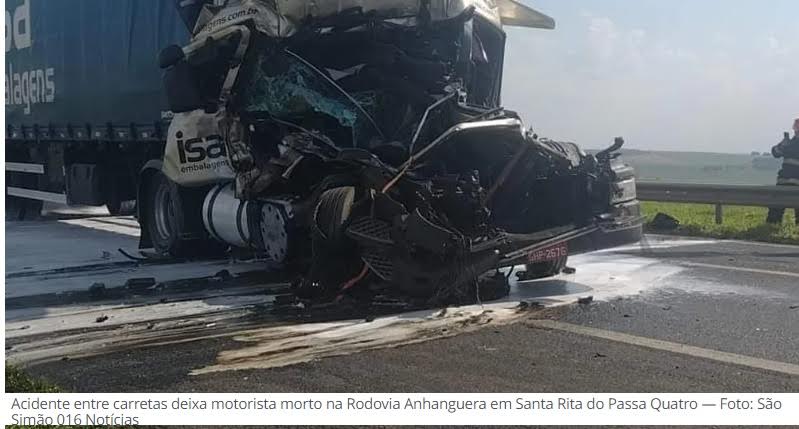 Um acidente envolvendo duas carretas deixou uma pessoa morta na tarde desta quarta-feira (8), na Rodovia Anhanguera (SP-330), em Santa Rita do Passa Quatro. Essa é a terceira morte de caminhoneiro em colisões traseiras em 11 dias.