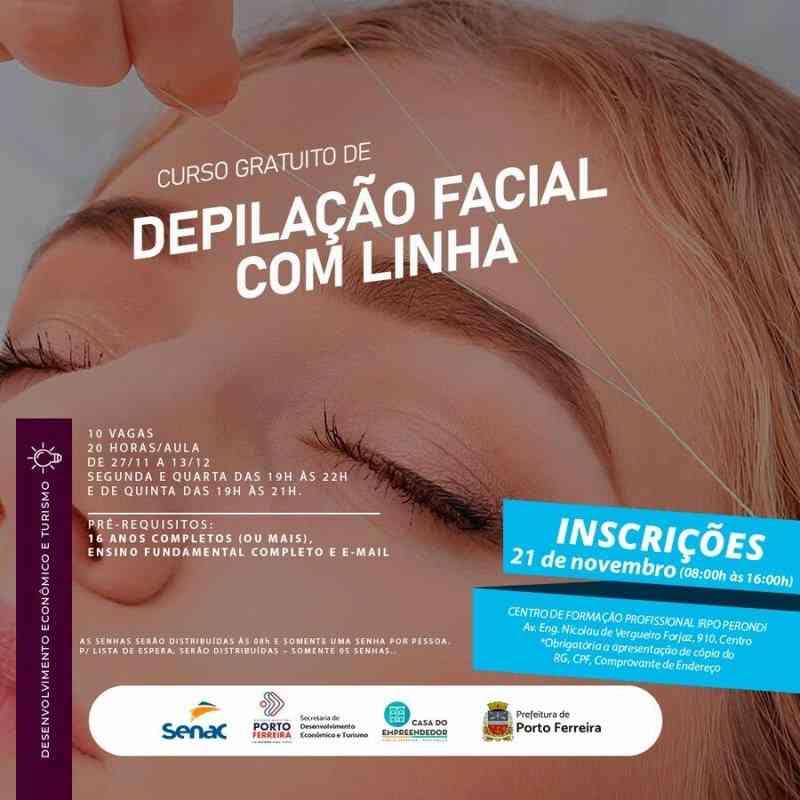 A Prefeitura de Porto Ferreira, em parceria com o Senac (Serviço Nacional de Aprendizagem Comercial), por intermédio da Secretaria de Desenvolvimento Econômico e Turismo, oferece vagas para o Curso de Depilação Facial Com Linha, totalmente gratuito.