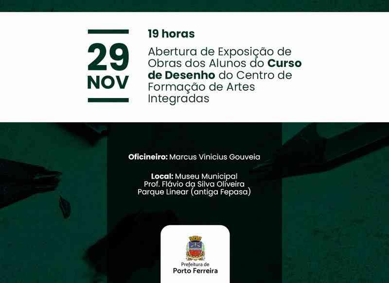 O Museu Municipal Professor Flávio da Silva Oliveira, situado no Parque Linear (antiga Fepasa), receberá a exposição de arte dos alunos do Curso de Desenho do Centro Municipal de Formação de Artes Integradas, vinculado à Secretaria de Cultura e Economia Criativa de Porto Ferreira.