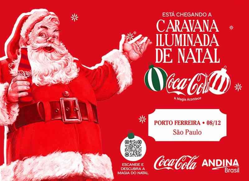 A Secretaria de Cultura e Economia Criativa da Prefeitura de Porto Ferreira tem a satisfação de informar que a tão esperada Caravana Iluminada de Natal da Coca-Cola está de volta a Porto Ferreira neste ano. O evento, que se tornou uma tradição natalina, promete encantar moradores e visitantes com sua atmosfera mágica e iluminada.