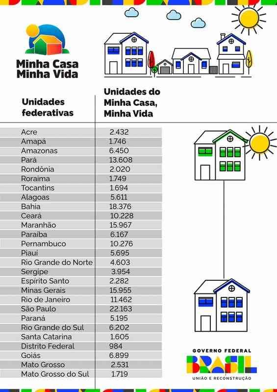 A capital do estado, São Paulo, concentra a maior parte das novas moradias. São 1.782 unidades. Os municípios de Guarulhos (904), Santo André (600), São Bernardo do Campo (600) e Sorocaba (540) aparecem na sequência das cidades com mais empreendimentos. Confira a lista completa, divulgada no Diário Oficial da União.