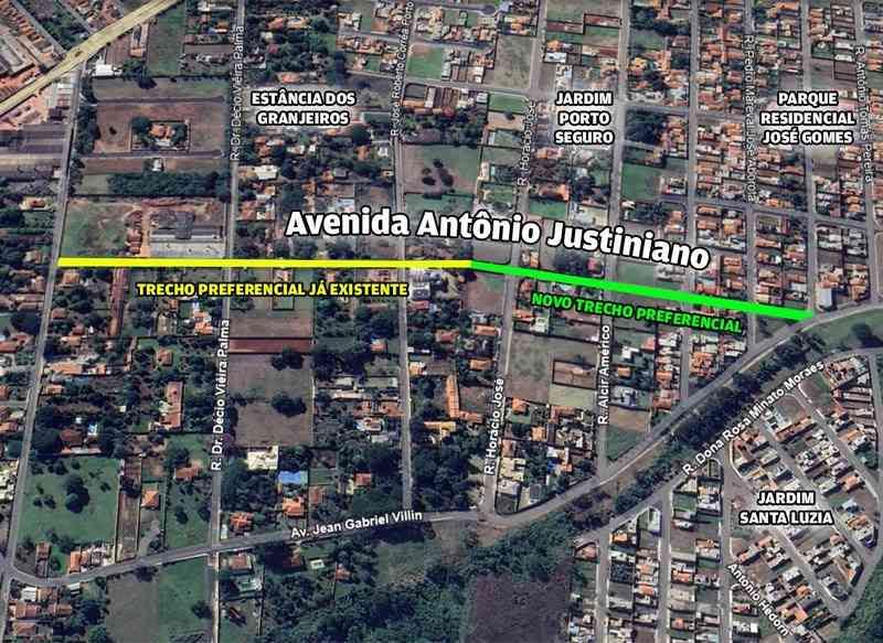 A avenida Antônio Justiniano, que percorre os bairros Estância dos Granjeiros, Jardim Porto Seguro e Parque Residencial José Gomes, está sofrendo esta semana uma alteração de preferencial.