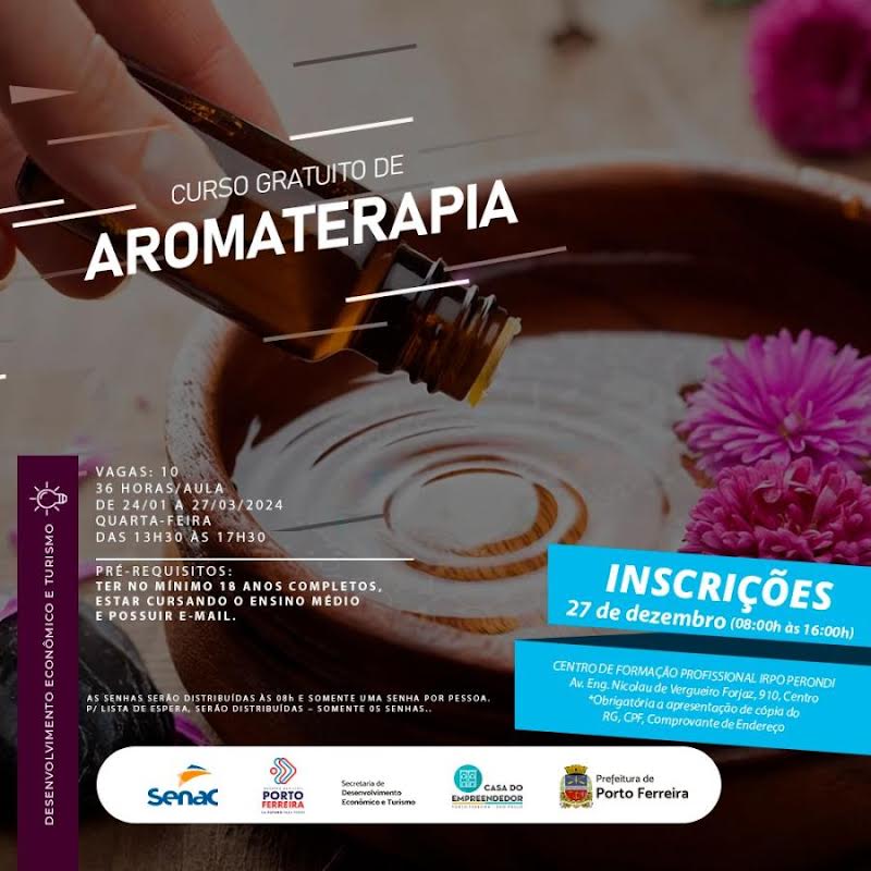 Porto Ferreira abre inscrições para o curso de Aromaterapia na quarta-feira (27.12)
