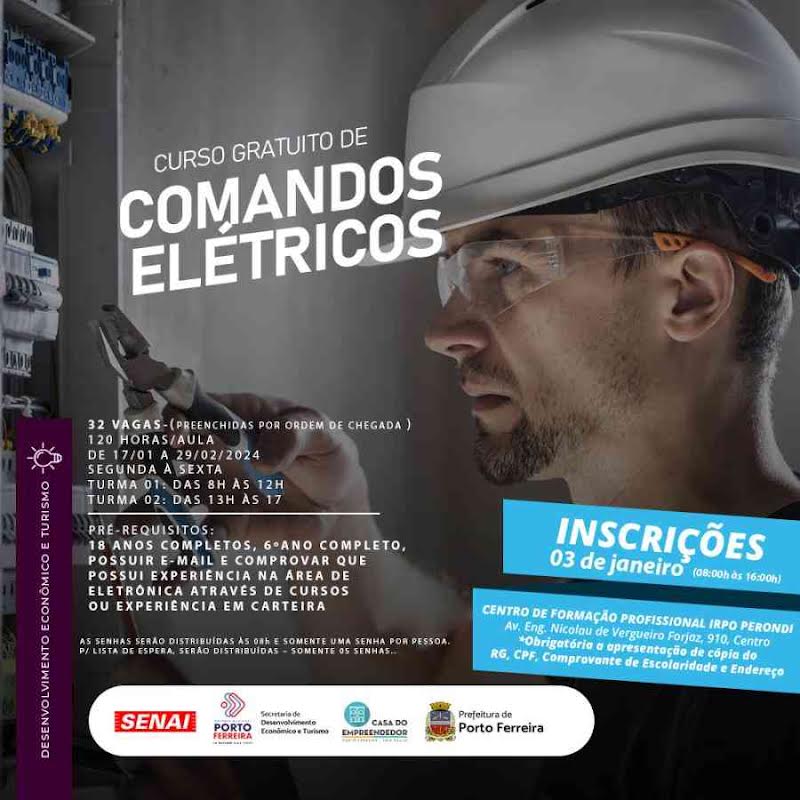 Porto Ferreira abrirá inscrições para o curso de comandos elétricos na próxima quarta-feira (03.01)