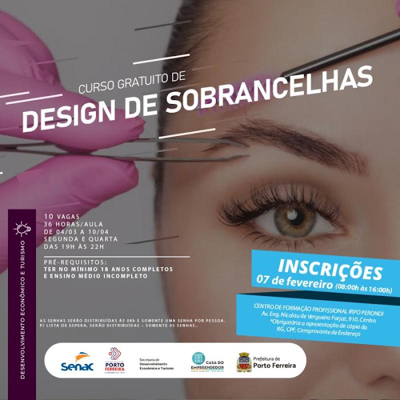 A Prefeitura Municipal de Porto Ferreira, em parceria com o SENAC, por intermédio da Secretaria de Desenvolvimento Econômico e Turismo, oferece vagas para o curso de: DESIGNER DE SOBRANCELHAS