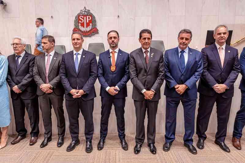 A Associação dos Delegados de Polícia do Estado de São Paulo realizou nesta segunda-feira, dia 19, a cerimônia de posse de André Santos Pereira, seu novo presidente, e do corpo diretivo da entidade para o triênio 2024-2026. O evento aconteceu na Assembleia Legislativa.