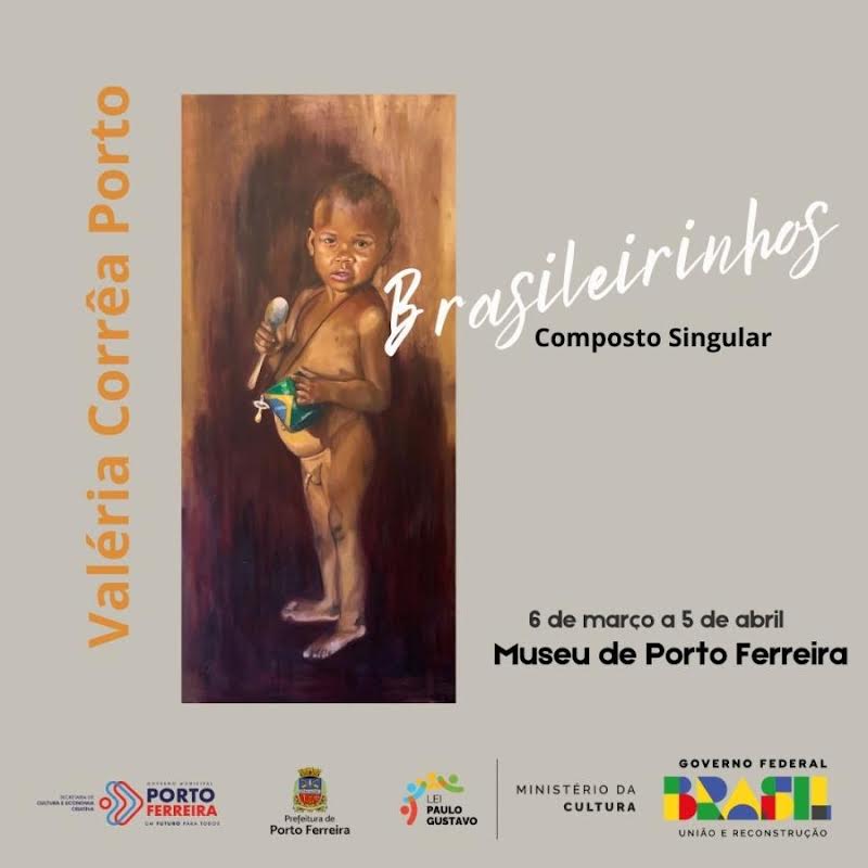 A Secretaria de Cultura e Economia Criativa da Prefeitura de Porto Ferreira anuncia a exposição “Brasileirinhos – Composto Singular”, da artista Valéria Corrêa Porto Sanches Fadel. Financiada com recursos da Lei Complementar 195/2022 (Lei Paulo Gustavo), o projeto foi aprovado no Edital 01/2023, destacando-se como uma iniciativa cultural para a comunidade.